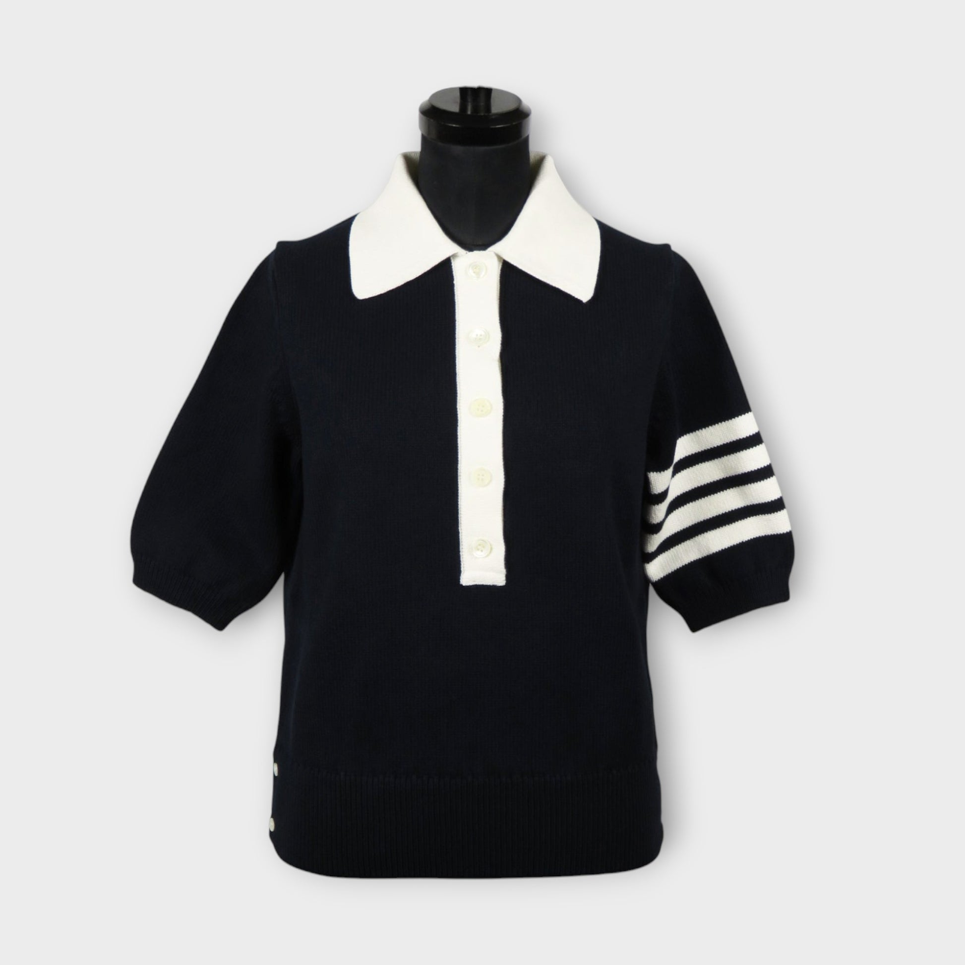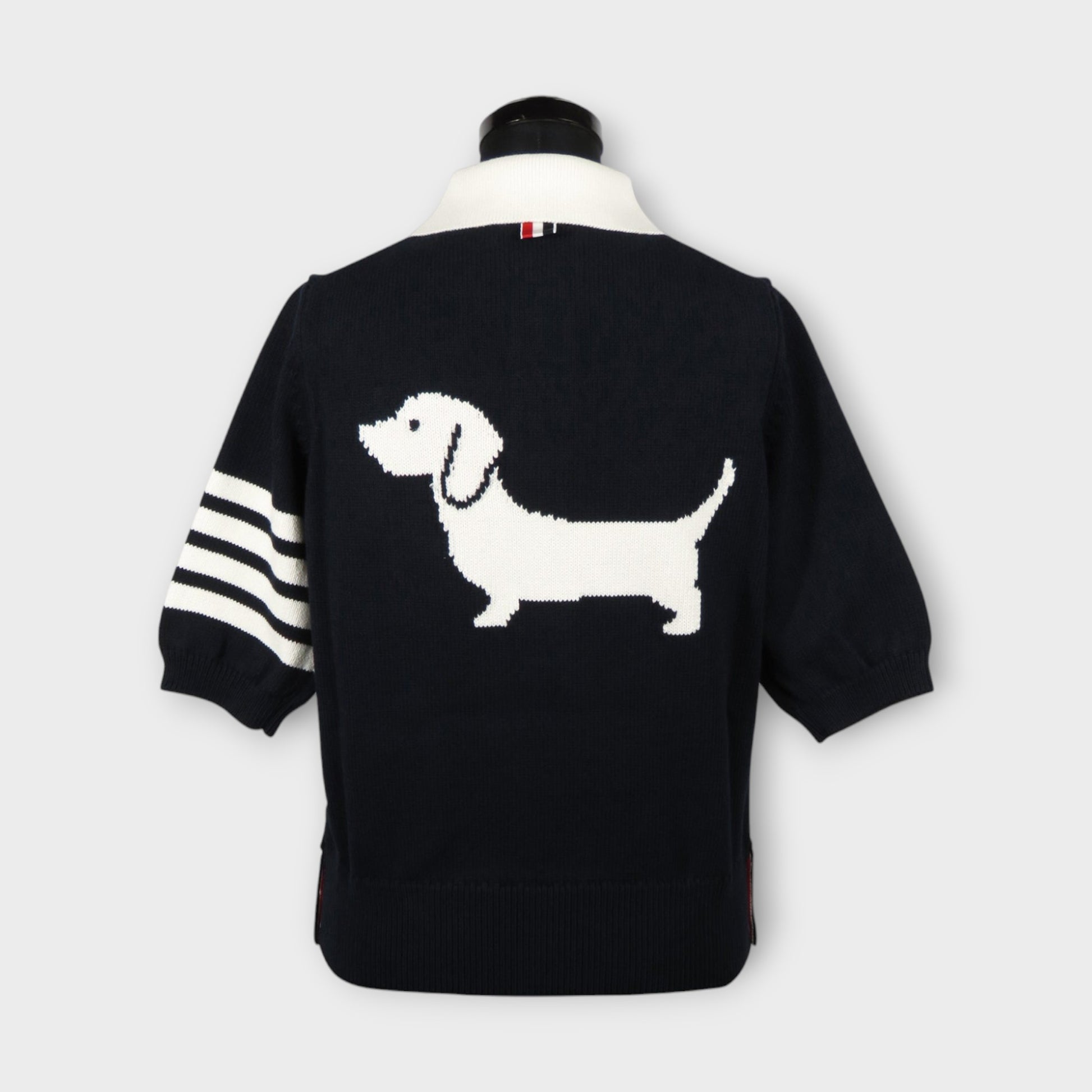 THOM BROWNE HECTOR ICON JERSEY STITCH INTARSIA SS POLO IN COTTON W/ 4 BAR STRIPE