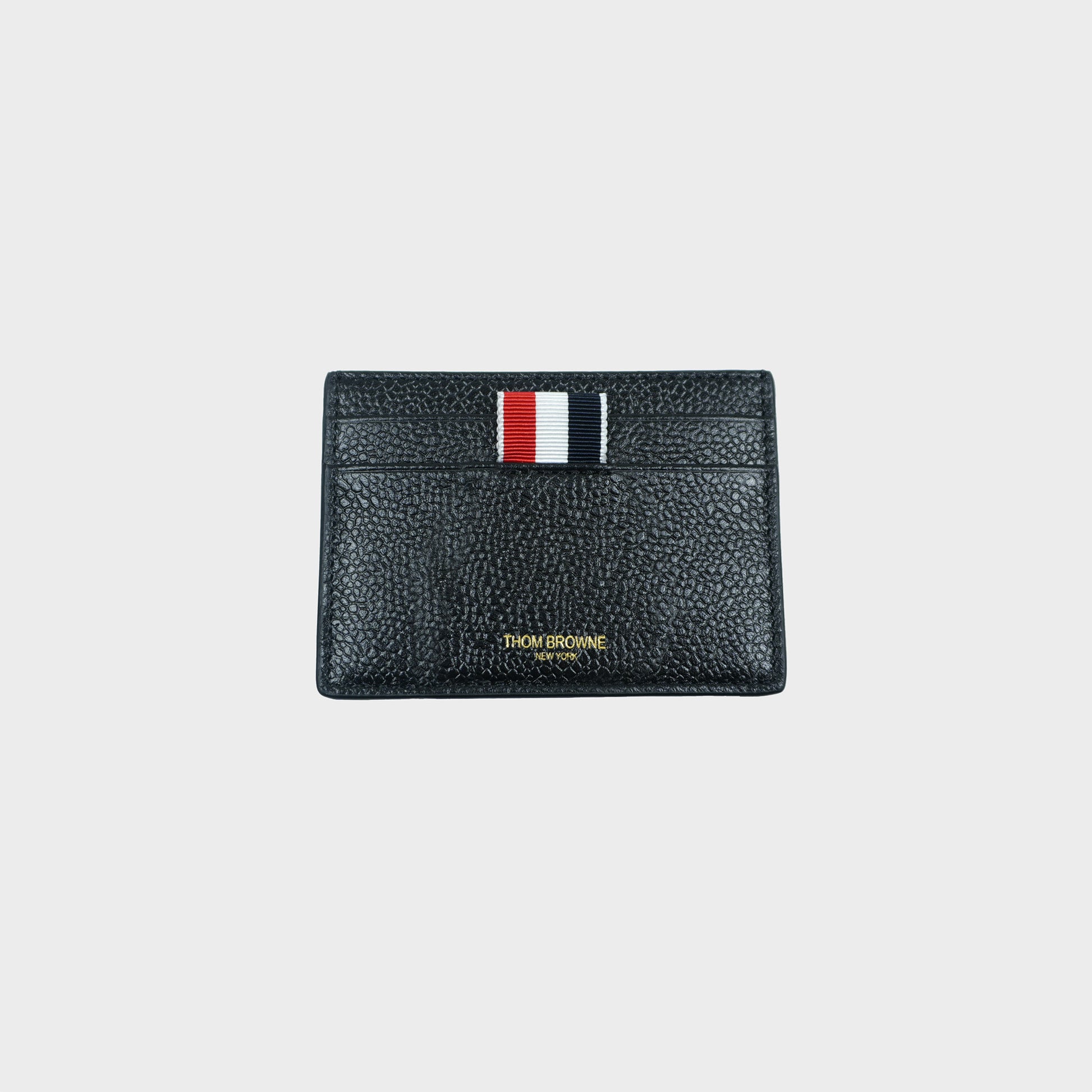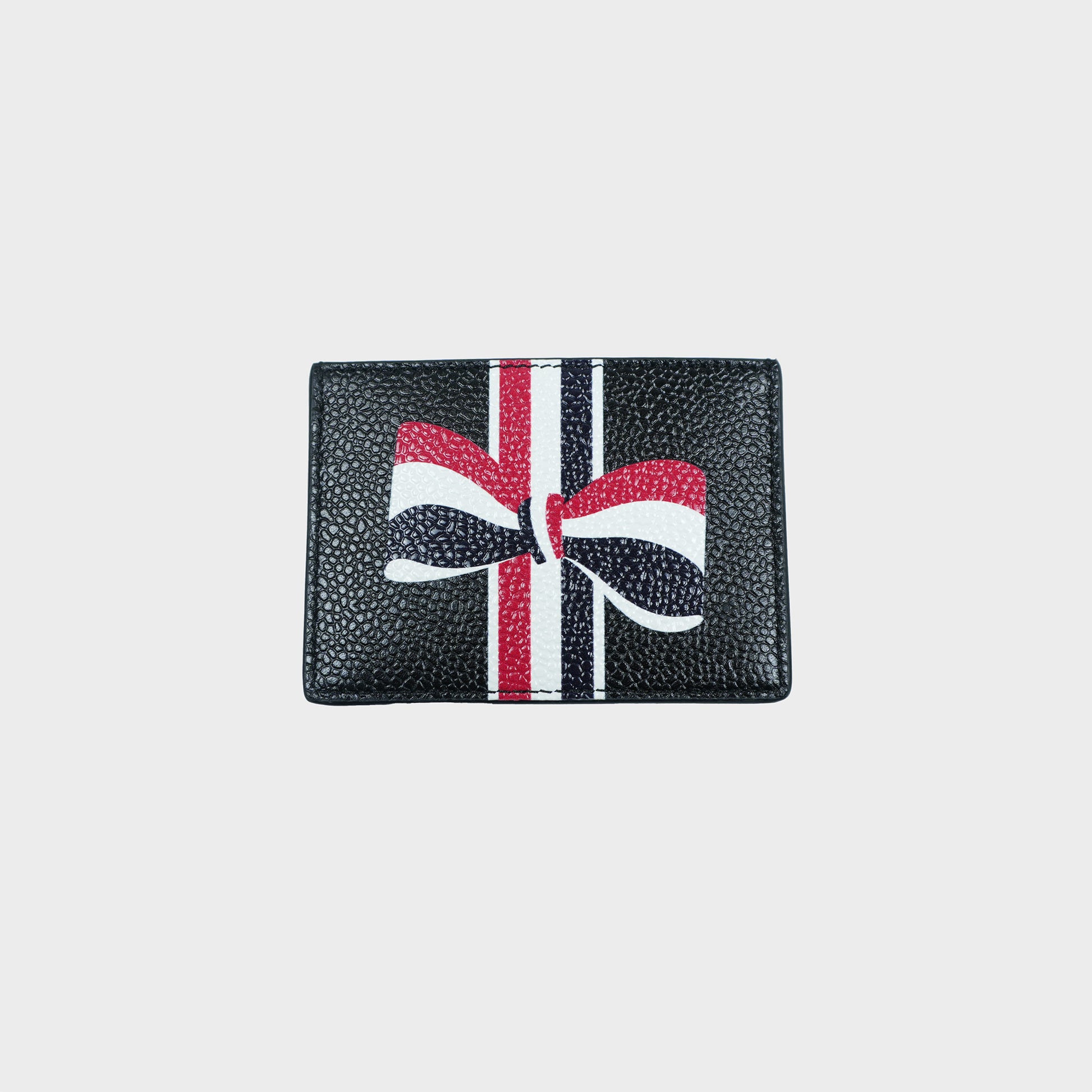 THOM BROWNE SINGLE CARD HOLDER W/ RWB BOW IN PEBBLE GRAIN LEATHER